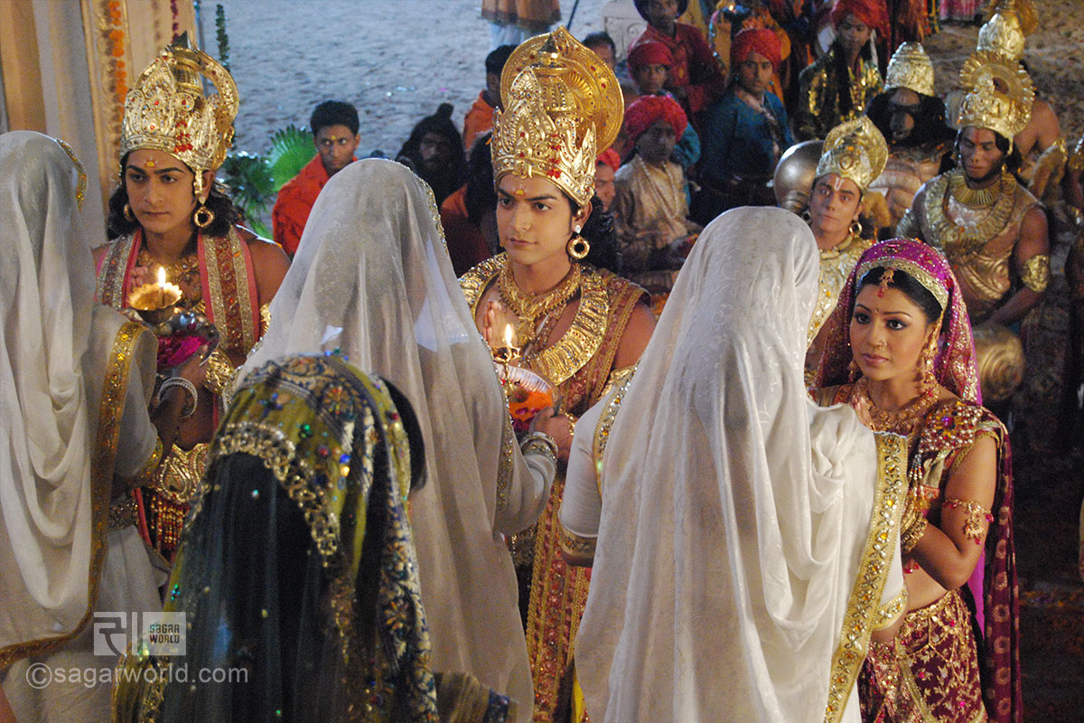 The “RAMAYAN’ narrates the life and times of Shri Rama, the seventh incarnation of Lord Vishnu. Ramayan says the saga of Lord Rama’s incarnation. The Gods pray to Lord Vishnu for King Dashrath’s yagya to be blessed by a son. Rama is born, his childhood and fundamental education is imparted in Gurukul. After completion of education, Rama returns to Ayodhya. Rama accompanies Vishwamitra and slays Tadaka. Vishwamitra bestows divine weapons on to Him and Rama and Lakshman proceed to Mithila. In Sita Swayamvar Rama breaks the Shiva Dhanush and Sita garlands Rama, after which Janak sends the message to Dashrath and the four brothers are married to the four daughters of Janak and his brother.