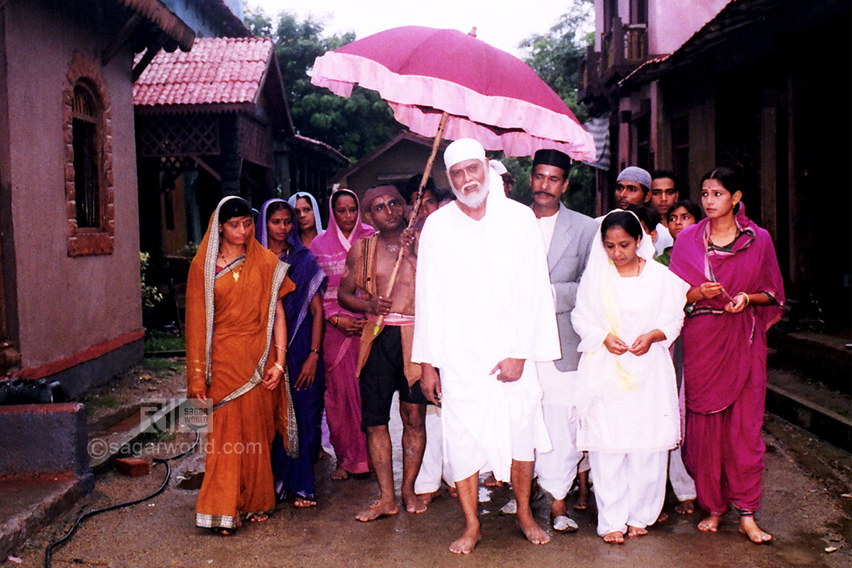 The inspiring life of the saint is recreated by Dr. Sagar with intensity and realism, sensitivity and authenticity, shooting on real locations and on a massive set erected at great cost at Sagar Film City, Baroda, for the purpose. The set represents Shirdi of the period between 1849 and 1918 when Sai Baba drew devotees to him and inspired their faith in him and his belief in the oneness of all religions and faith.